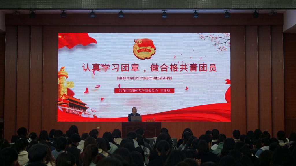 2019级信阳师范学院5000余名大学新生团员,跨祖国27个省区市来到信阳师范学院求学求知,实现青春梦想。青年团员是实现中国梦的主力军、后备军,在经济社会发展中发挥着突击队作用,高校立德树人是核心培养任务,立足信阳师范学院大学生“讲价值观故事,实现青春梦想”和“青春建功新时代,传播校园正能量”以及提升“学业、素养、技能、表达、写作、组织”六大能力要求,学校团委面向2019级新生,精心设计课程,细致选聘讲师,集中6周时间,开展30场专题宣讲。