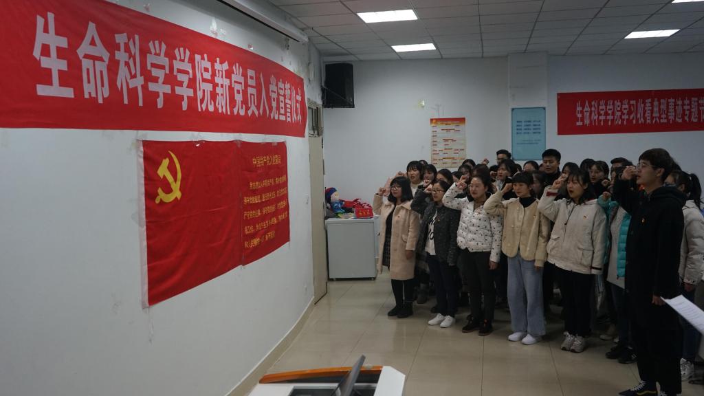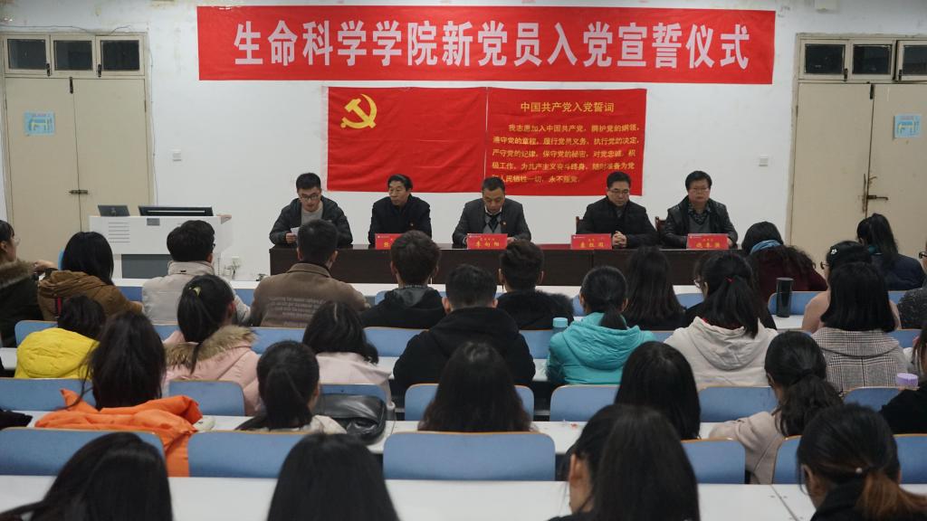 12月10日下午,我院于生物楼414多媒体教室召开2019年下半年新发展党员入党宣誓仪式大会。院党委书记李向阳,党委委员、院长袁红雨,党委委员、副院长张海宾,纪检委员、遗传研究所副所长饶本强,学生党支部书记杨娟娟、熊蕾及学生各支部党员参加会议。会议由饶本强主持。