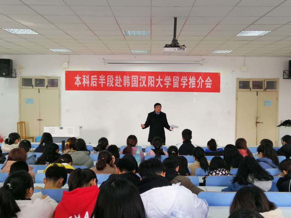 杨霁虹首先介绍了国内中学、本硕博毕业留学的概况和目前现状及大概的年支出,强调东亚文化经济圈的生命力和认同感以及生活习惯的趋同性,指出,非毕业时期能提前经过汉阳大学专家的莅校考核,快速签证,进入世界知名大学本科学习的人生快意成就,退万步说,假如不适应汉阳大学的生活与学习节奏,亦可返回信阳师院继续学业。