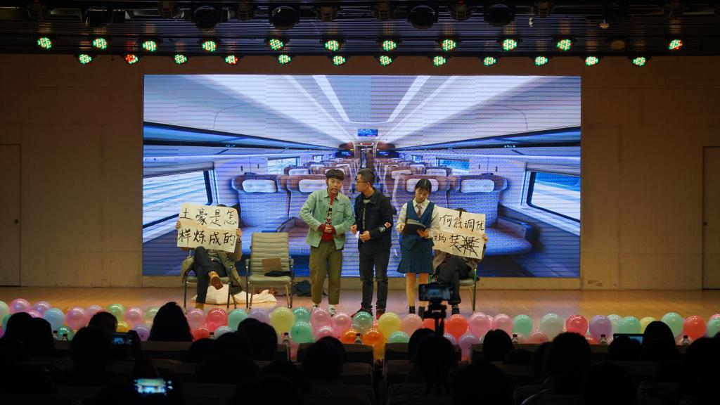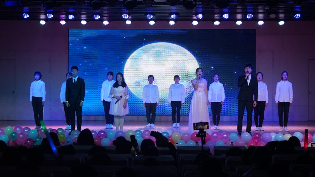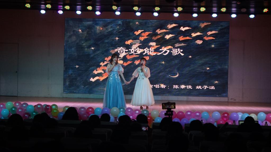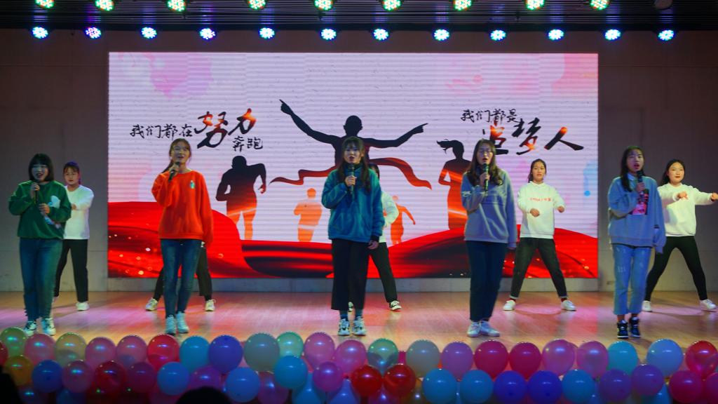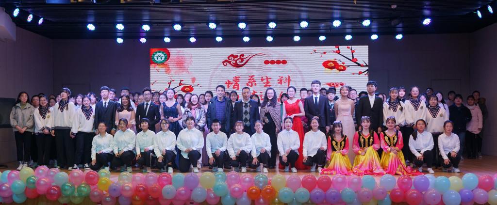 此次晚会以“情系生科,执梦远航”为主题,集歌曲、舞蹈、小品、朗诵等多种节目形式为一体,内容丰富,形式多样,为在场观众带来一场精彩绝伦的视听盛宴。歌舞《我们都是追梦人》引人入胜,励志歌曲搭配活力四射的舞蹈,展现出当代学子积极向上,朝气蓬勃的青春风采。朗诵《爱我中华》以激昂的语调、洪亮的声音,用诗歌抒发对祖国的热爱,用真情献上对祖国的祝福。舞蹈《新疆舞》带领在场观众体验异域风情,感受其无限魅力。小品《人在囧车》讲述两位农民工过年回家心切,购买高铁商务舱的一系列幽默故事,表达出了对城市建设者无私奉献的赞扬之情。话剧《我们在这里》讲述了单亲家庭的晨阳和家庭困难的萌萌互让国家励志奖学金的感人故事,深情演绎当代大学生勇于担当的责任感与奉献精神,震撼现场。观众掌声连连,现场气氛热烈。晚会在优美动听的歌曲《仰望星空》中落下帷幕,与会领导与演员合影留念。