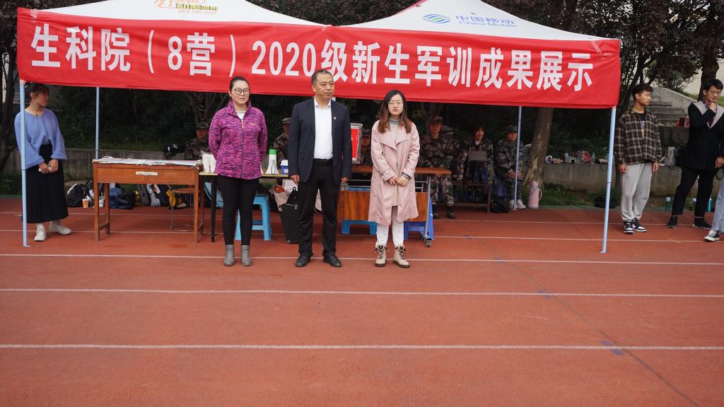 为增强学子组织纪律观念,培养艰苦奋斗的作风,提高学子综合素质,10月18日,我院于东操场举行2020级新生军训成果展示。我院党委书记李向阳,20级专职辅导员李敏,武装干事朱晓雯共同观看,众多学子共同参与。