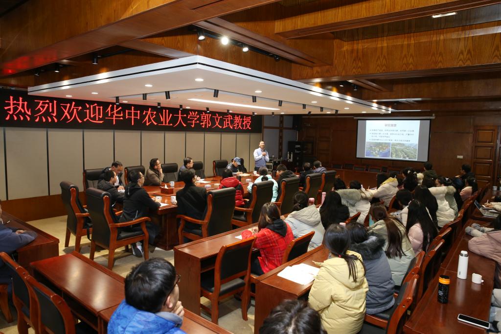12月3日下午,应太阳成集团122ccvip邀请,华中农业大学郭文武教授在逸夫楼321会议室作了题为“柑橘细胞工程新品种培育及胞质杂种雄性不育机理解析”和“国家自然科学基金申报写作技巧与体会”两场学术报告。生命学科学院院长袁红雨、副院长宋新强及部分师生代表参加了此次学术报告,报告会由生命学科学院院长袁红雨主持。
