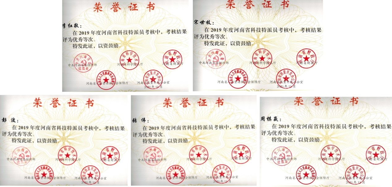 近日,中共河南省委组织部、河南省科技厅、河南省财政厅等五部门联合发文,公布了2019年度河南省科技特派员考核结果,我院李红敬(受援单位:潢川县瑞明种养殖专业合作社)、宋世枝(受援单位:光山县罗陈乡周湾村)、彭波(受援单位:光山县罗陈乡周湾村)、张伟(受援单位:河南九华山茶业有限公司)和周棋赢(受援单位:潢川县光州茶业有限责任公司)五位教师,在考核中获优秀等次。