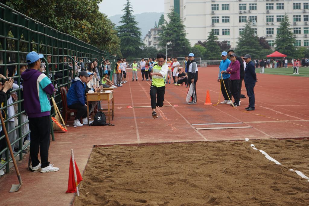 4月23日上午,我校第三十九届运动会持续进行中。我院参赛运动员斗志昂扬,准时就位。田赛区,在男子甲组三级跳远决赛中,我院男子跳远项目运动员以标准的姿态完成助跑、起跳、腾空和落地等一系列跳远动作,全神贯注地投入比赛。我院运动员李可以10.05米的成绩获得决赛第八名。