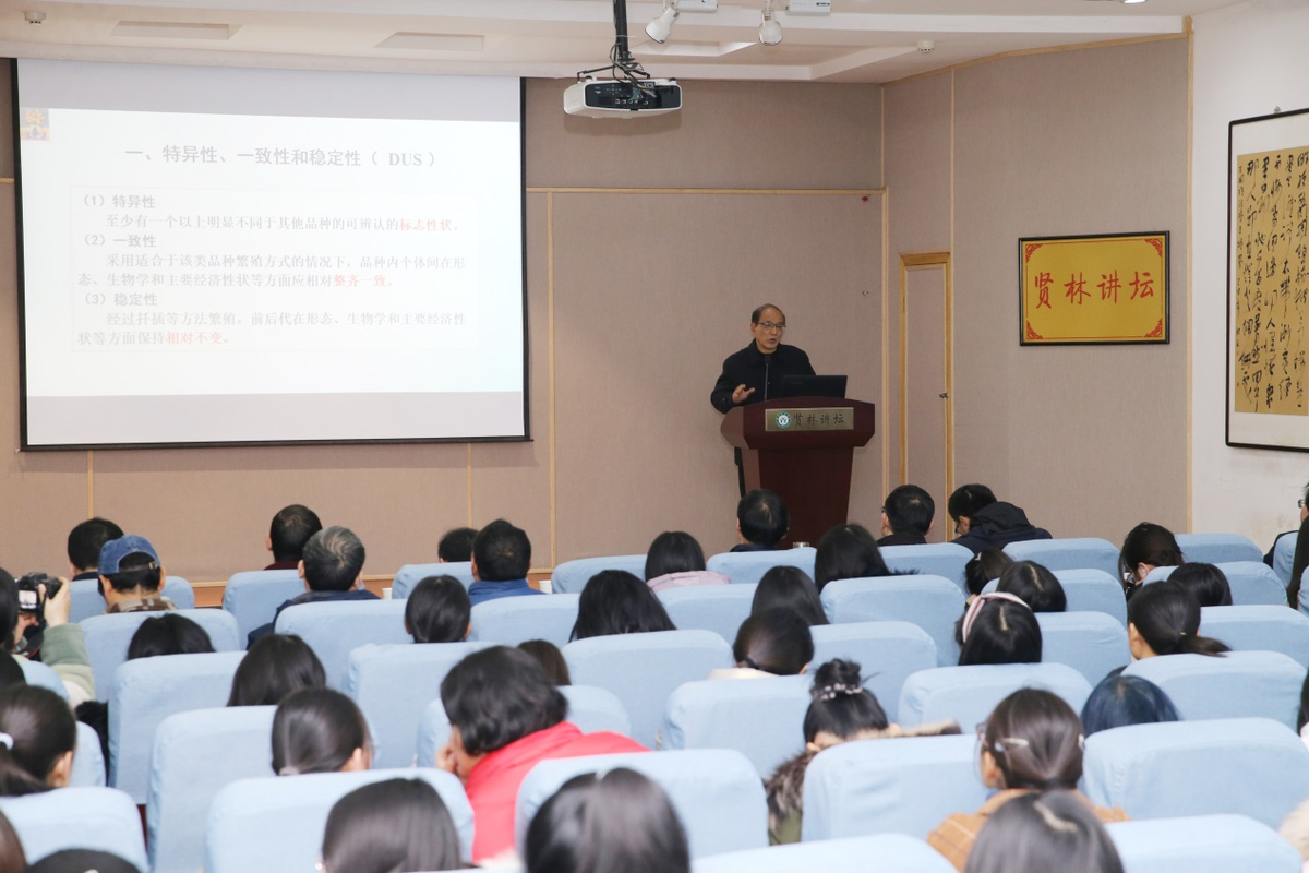 江昌俊教授做了题为“茶树品种测试标准”的报告,详细讲解了《非主要农作物品种登记办法》现定具备特异性、一致性和稳定性(DUS)的测试方法;郭桂义教授做了题为“信阳毛尖茶加工与质量提升”的报告,对信阳毛尖的发展和加工工艺提出了好的见解;宁井铭教授做了题为“茶学学科现状、未来发展及基本知识”的报告,详细讲解了我国茶学学科的发展和未来;王彬副研究员做了题为“茶叶特征成分与终端产品开发”的报告,指出茶叶三大特征成分在实际生产和产品开发中的重要性。