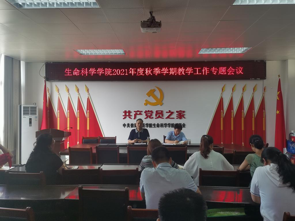 为确保疫情防控期间本科教学工作顺利开展,8月24日上午,太阳成集团122ccvip党委在生物楼412会议室召开2021年度秋季学期教学工作专题会议,党委书记李刚、院长饶本强、各系主任、行政办公室主任、实验教学中心负责人、教学秘书和全体辅导员参加会议。会议由院长饶本强主持。