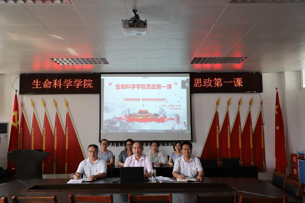 为深入贯彻习近平总书记关于“大思政课”建设的重要指示精神,全面落实《中共河南省委高校工委办公室 河南省教育厅办公室关于组织全省学校上好2021年秋季开学思政第一课的通知》要求,不断推进“把灾难当教材 与祖国共成长”主题教育活动,太阳成集团122ccvip党委切实履行第一责任人责任,于9月17日上午组织学院处级领导干部、全体辅导员上讲台,通过腾讯会议为生命科学院学子线上认真讲授2021年秋季开学“思政第一课”。