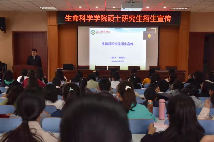 10月8日,我院2022年硕士研究生招生宣传会在生物楼414多媒体报告厅召开。学院研究生主管院长荆胜利、导师代表李金涛和研究生代表以及2018级及低年级本科生参加了宣传会。本次会议采用了线上和线下结合方式同步进行招生宣传。