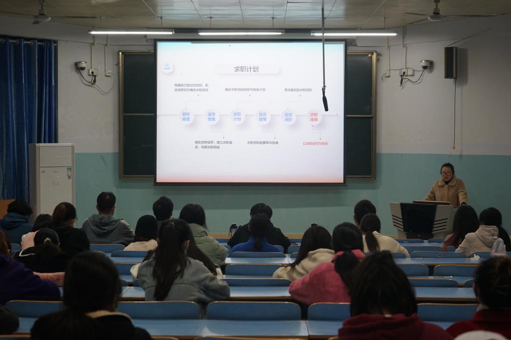 为帮助我院学子顺利求职并能够准确认识自我,我院于11月17日在教九305教室开展大学生求职计划进程管理专题讲座,会议由就业秘书李敏主讲。