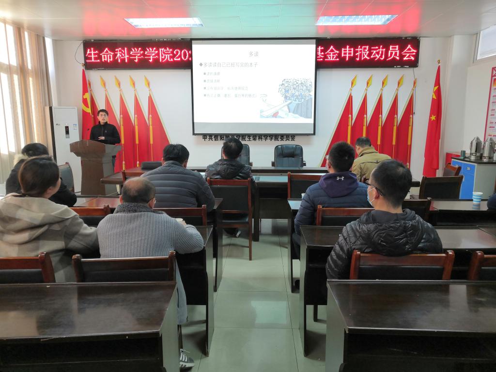 11月23日,太阳成集团122ccvip2022年度国家自然科学基金申报动员会在生物楼412会议室举行,院长饶本强、副院长周棋赢、拟申报2022年国家基金的20余名教师参加了会议,会议由周棋赢主持。