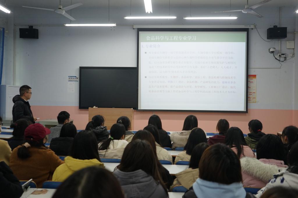 为帮助我院2021级食品科学与工程专业学生更好的了解本专业,同时帮助同学们提前制订自己的未来生涯规划,12月14日下午,我院于教九107开展2021级食品科学与工程学业讲座,讲座由食品科学与工程系专职教师熊天真博士主讲,2021级专职辅导员朱晓雯和全体2021级食品科学与工程专业学生参加。