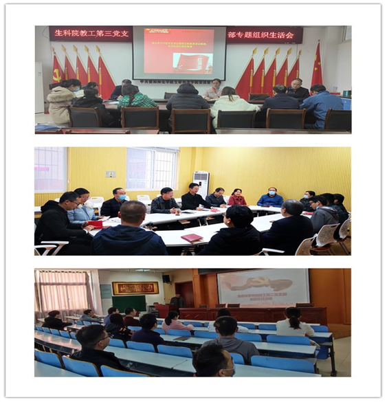 各党支部书记带领支部全体党员认真学习了习近平总书记视察陕西延安和河南安阳重要讲话精神,集中观看了纪录片《根脉——红旗渠精神》,围绕会议主题,对照“自力更生、艰苦创业、团结协作、无私奉献”的红旗渠精神,结合自身学习和工作实际,就如何把红旗渠精神融入日常教学、科研和管理工作,展开了讨论交流,大家纷纷表示,将牢记领袖嘱托,加压奋进,把习近平总书记的讲话精神转化为政治责任与精神动力,将红旗渠精神融入血脉、践于行动,坚持“一切为了学生,为了学生一切”,将个人价值追求融入到党和人民的教育事业中,勤学苦干、实干担当,找短板、查弱项,不断提升教育教学工作能力水平,交出让师生满意的答卷,为学院各项工作更好发展贡献应有力量。