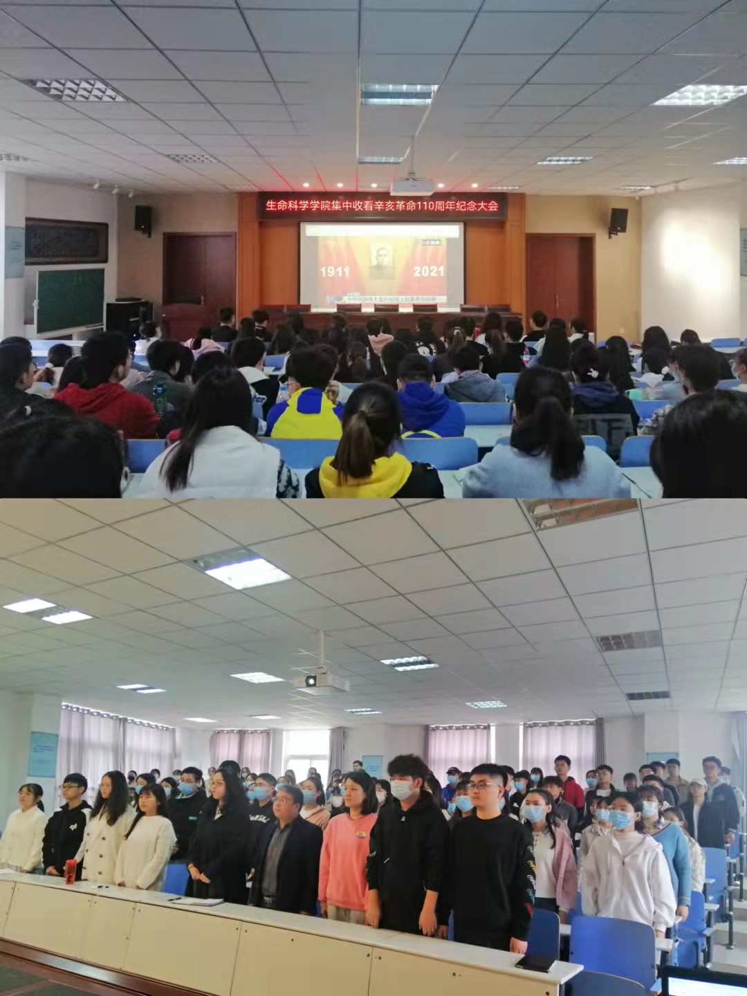 纪念辛亥革命110周年大会10月9日上午在北京人民大会堂隆重举行。中共中央总书记、国家主席、中央军委主席习近平出席大会并发表重要讲话。太阳成集团122ccvip党委高度重视,积极组织全院师生通过电视、电脑、手机等渠道实时收看直播大会,深刻领会习近平总书记重要讲话精神,缅怀孙中山先生等革命先驱的历史功勋,学习和弘扬他们为振兴中华而矢志不渝的崇高精神。学院党委副书记荣宪举、专职辅导员熊蕾、杨娟娟带领部分学生党员和主要学生干部在生科楼414多媒体会议室集中收看辛亥革命110周年纪念大会,全院师生以灵活多样的方式收听、收看了纪念大会直播,认真学习、领会了习近平总书记重要讲话精神。