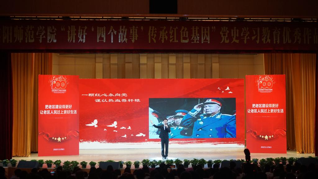 3月30日,信阳师范学院在艺术楼音乐厅举行以“讲好四个故事,传承红色基因”为主题的党史教育优秀作品展演活动,我院2018级学子李春洋担纲第九个故事主讲人。