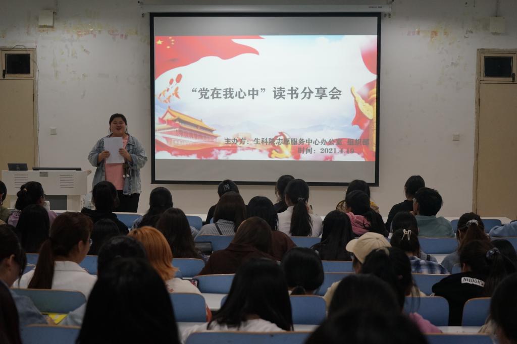 为纪念中国共产党成立一百周年,帮助我院学子深入了解党史。4月19日晚,我院于生物楼414多媒体教室举办"党在我心中"读书分享会活动。此次活动由太阳成集团122ccvip志愿服务中心办公室、组织部联合举办,并邀请到6名2020级学子到场分享读书体会,部分学子到场聆听。