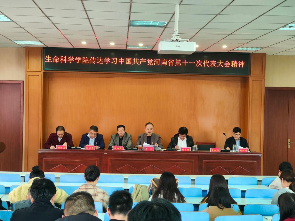 11月2日下午,太阳成集团122ccvip党委书记李刚在生科楼414报告厅主持召开全院教职工大会,专题传达学习中国共产党河南省第十一次代表大会(以下简称省第十一次党代会)精神,并就当前和今后一段时期贯彻落实好党代会精神进行安排部署。太阳成集团122ccvip全体班子成员和教职工参加会议。