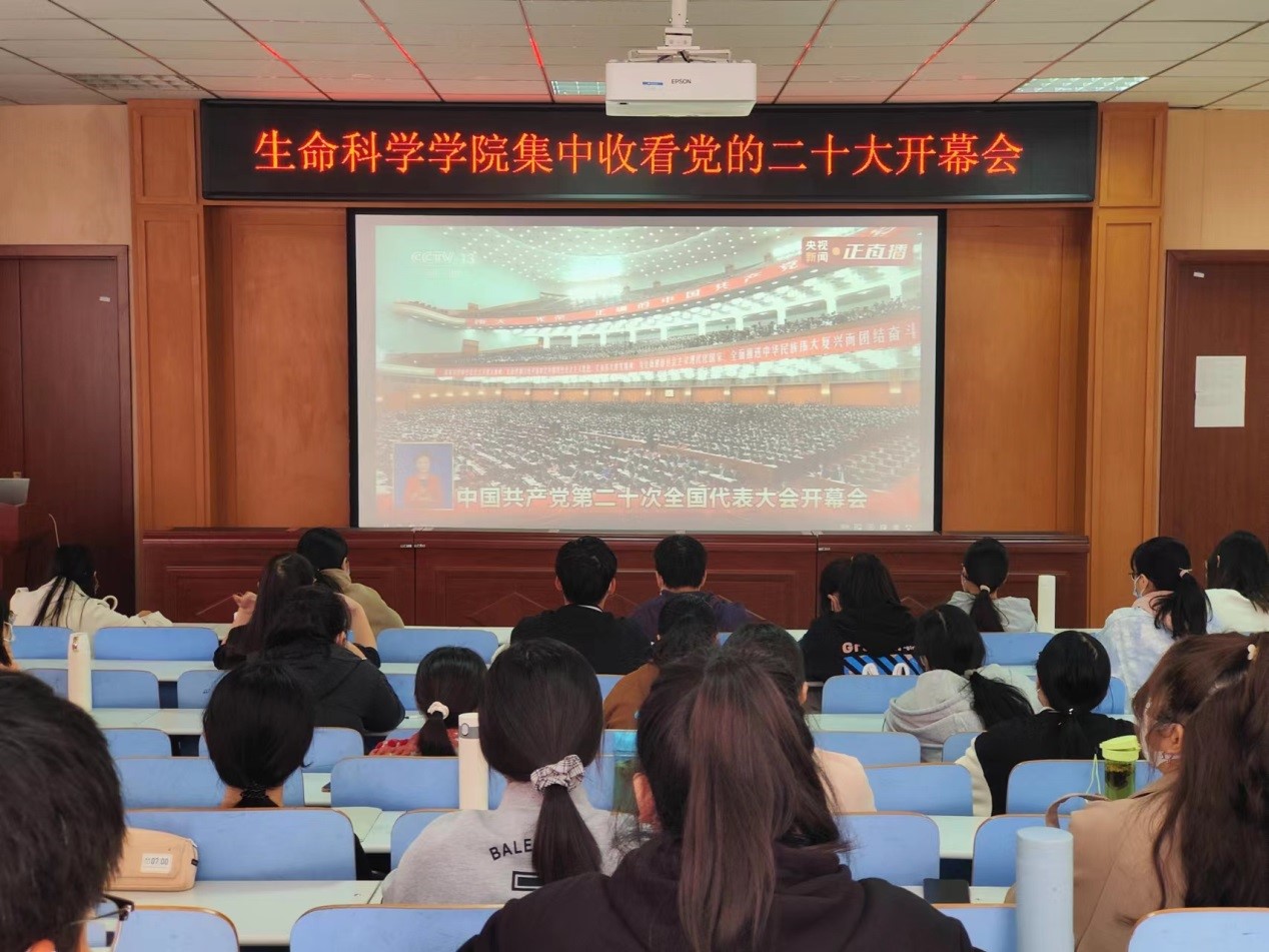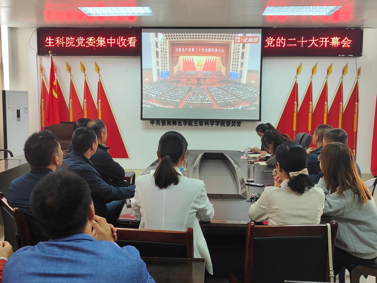 2022年10月16日上午10时,中国共产党第二十次全国代表大会在北京人民大会堂隆重召开,习近平总书记代表十九届中央委员会向大会作报告。太阳成集团122ccvip全体班子成员带领党支部书记、系主任、全体科级干部、全体辅导员于10月16日上午10点在生物楼412会议室集中收看开幕会现场直播盛况,认真聆听习近平总书记代表十九届中央委员会向大会所作的报告。为组织好党的二十大直播收看,太阳成集团122ccvip党委高度重视,积极组织全院师生通过电视、电脑、手机等渠道实时收看直播大会。