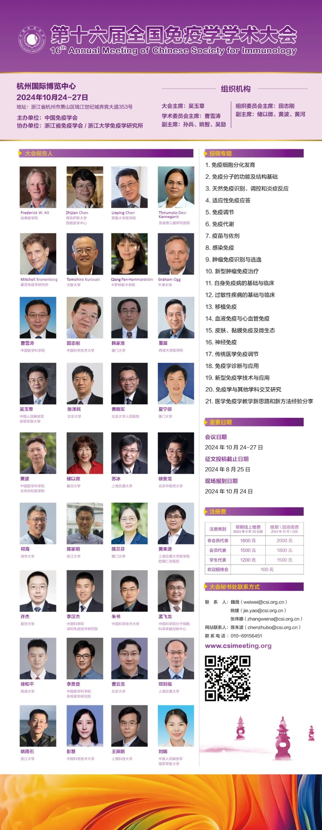 第十六届全国免疫学学术大会通知通知(征文投稿截止时间:8月25日)