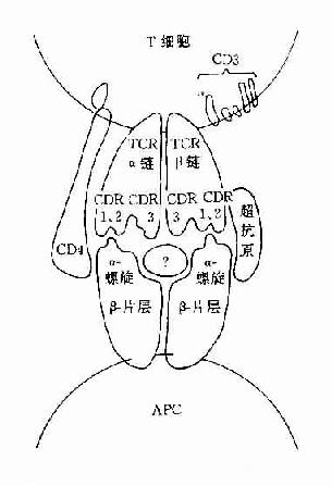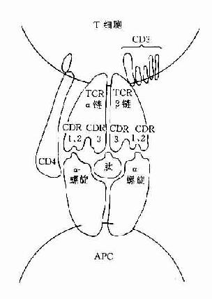 这种分子可表达于全部CD4+T细胞及50%CD8+细胞。它是8090KD的由双硫键连接的同源二聚体分子,属Ig基因超家族。